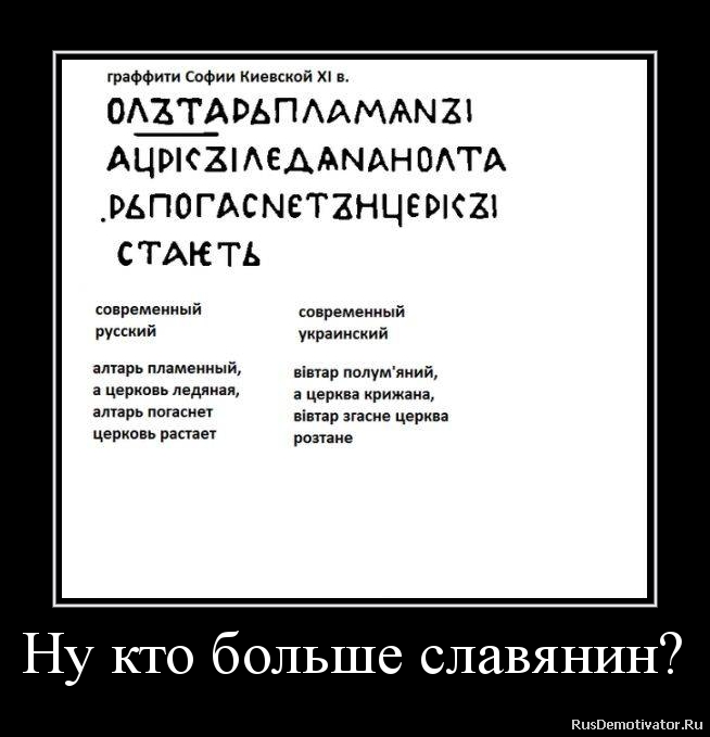 Всмотритесь только в оригинал, расшифруйте его хотя бы немного. И подпись я бы несколько другую придумал, что-то вроде “Ну кто больше соответствует названию ”Русь?”“