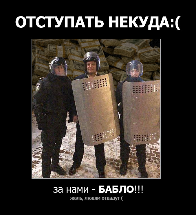 Так може їм заплатити!? Скинутись майданом 10 командирам Беркуту щоб відвели підлеглих від переднього краю. Я думаю на таку операцію пів України скинеться. Скинеться так щоб їм до кінця життя хватило. Якби рука не підніметься цим ссесовцям платити, але для діла треба цю рефлексію пересилити. А якщо передній край піде склавши амуніцію, то розвалиться все як в доміно. Ну якщо не розвалиться, то буде януческам такий приголомшевий удар, що не скоро від нього оправляться!