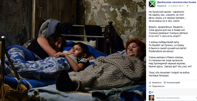 Но за что бы не брались «ПР»сты со своими подручными, их лучшие моменты – в прошлом. Война произвела переворот в сознании сотен тысяч людей из Донбасса (если не миллионов), а «рыги» не перестроились. Теперь всякую топорную работу а-ля Будяк ждет катастрофа. И вот пример: на странице «Донбасского землячества Киева» в Фейсбуке стишок о карателях лайкнули «аж» 6 пользователей. Так что вряд ли Борис Колесников одобрит такую бездарную работу.