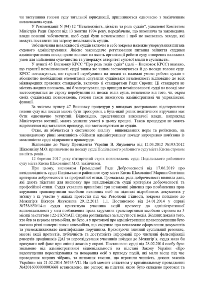 При цьому сам Богдан Моніч у своєму ЛИСТІ вказує про порушення при обранні та перебуванні Шаховніної М. на посаді голови Подільського районного суду м.Києва(лист відповідь додається).